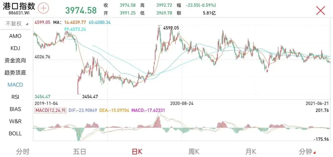而港口指数的表现则相对偏弱,目前还和均线系统纠缠在一起,