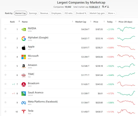 根据市值数据平台CompaniesMarketCap的数据,目前台积电已经晋升为市值排名全球第六的上市公司。