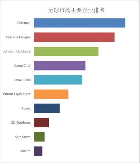 全球范围内,户外露营炉灶主要生产商包括Coleman、Cascade Designs、Johnson Outdoors、Camp Chef、Snow Peak等,其中十大厂商占有大约45%的市场份额。