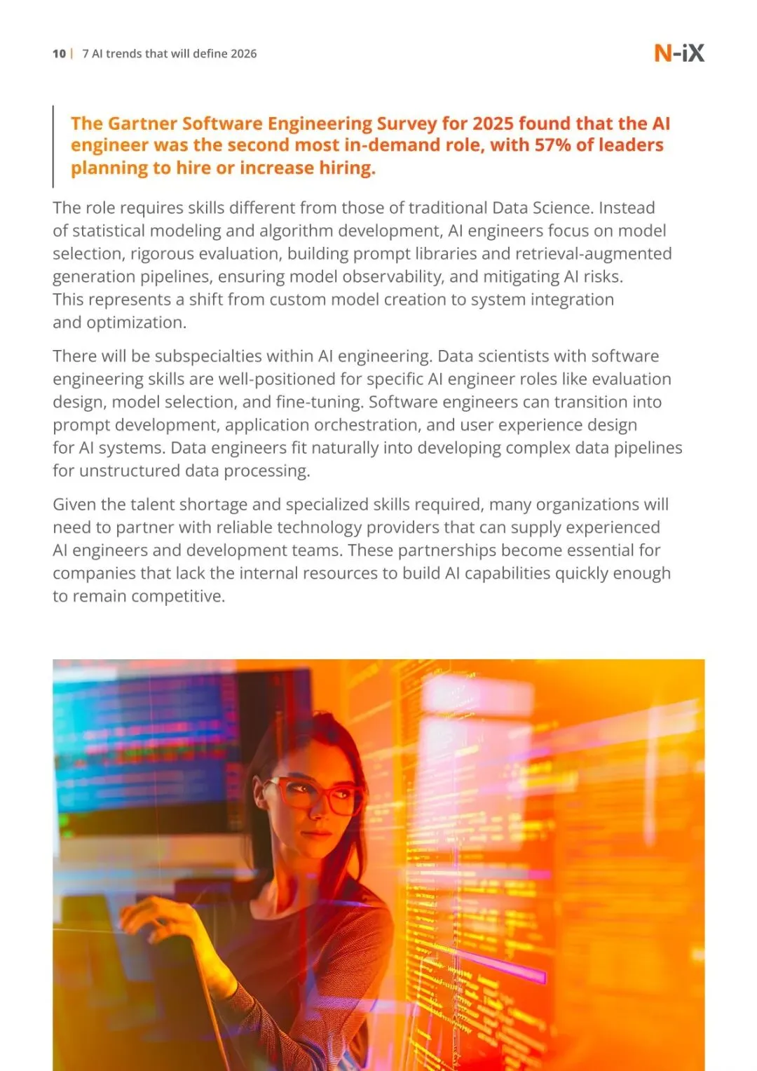 人才市场与人机交互方式发生结构性变化。AI 应用重心从定制模型开发转向预训练模型部署与优化,导致 AI 工程师岗位需求将在 2027 年达到数据科学家的三倍,该岗位需具备模型选择、风险 mitigation 等技能,不同背景从业者可通过技能转型切入细分领域。多模态 AI 成为人机交互标准,两年内多模态模型发布量增长超 11 倍,能同时处理文本、图像、音频、视频等数据,无需切换工具即可满足多样化需求。2028 年 80% 的数字工作者将使用多模态接口,自然的沟通方式降低了 AI 使用门槛,推动其在更多岗位普及。