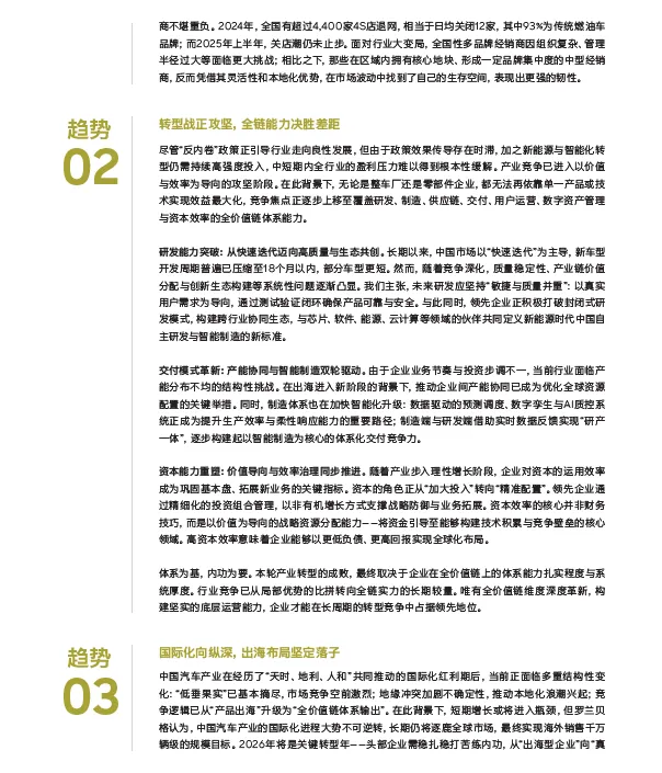 经销商环节的结构性退潮同样显著。报告显示,2024年全国超4400家4S店退网,其中93%为燃油车品牌,而2025年关店潮仍在延续。全国性多品牌经销商因管理半径过大、组织复杂陷入困境,而已经形成一定品牌集中度,且在区域内拥有核心地块的中型经销商则凭借本地化优势以及灵活性,展现出更强的抗风险能力。