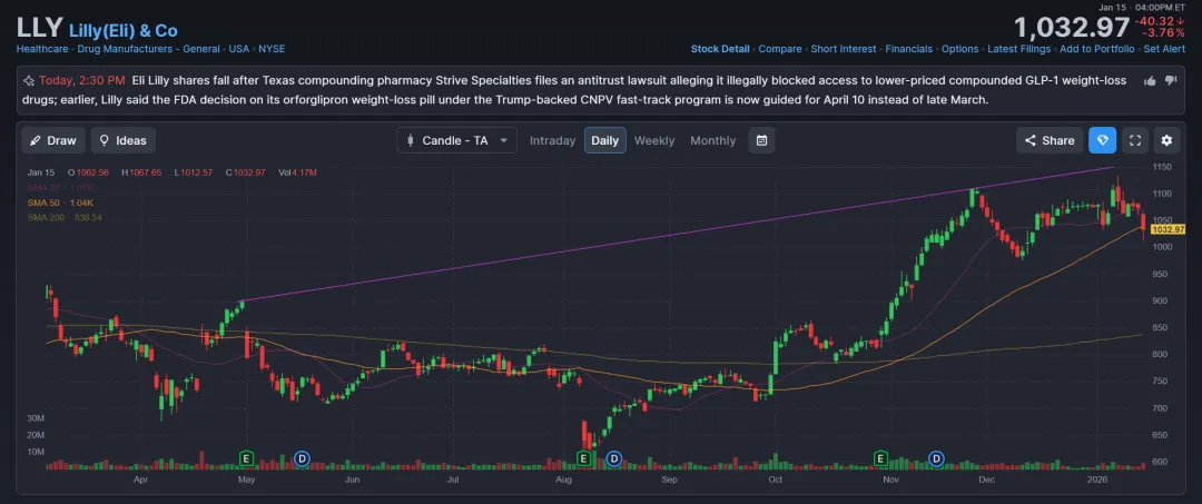 4. 礼来(LLY.US)暴跌超5%,公司减肥药被FDA列入审查名单,推迟至2026年4月10日做出决定。