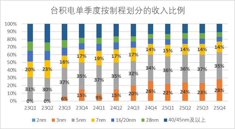 这主要得益于3nm制程产品的高增长,去年第四季度台积电3nm制程产品占收入比重达到了28%,环比提升了5pct。