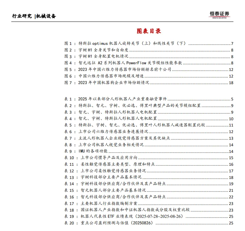 3.惯性测量单元(IMU):惯性测量单元(IMU)是测量物体三轴姿态角(或角速率)以及加速度的装置,是人形机器人实现姿态感知、运动控制与自主平衡的核心传感器。IMU在人形机器人上的具体功能包括姿态估计与平衡控制、运动控制与轨迹规划、抗扰与地形适应、跌倒检测和传感器融合等方面。目前,上市公司中芯动联科的陀螺仪产品达到国际领先水平,覆盖消费级、战术级、导航级,应用领域包括车辆、飞行器的惯性导航和平台稳定。华依科技的IMU业务已进入大规模量产阶段,2024年获得了上汽集团旗下智己汽车的IMU定点。明皜传感(苏州固锝持股21.63%)在MEMS加速度计领域具有较强的市场竞争力。理工导航在IMU技术上也处于领先地位,主要生产军品,同时逐步向民用领域拓展市场。