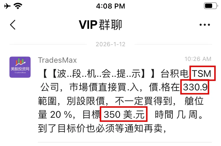 而在台积电财报发布前,我们通过基本面分析、量化模型和多维数据深度研判,果断在价格330.9美元时通知VIP社群买入,并给出明确目标价350美元。