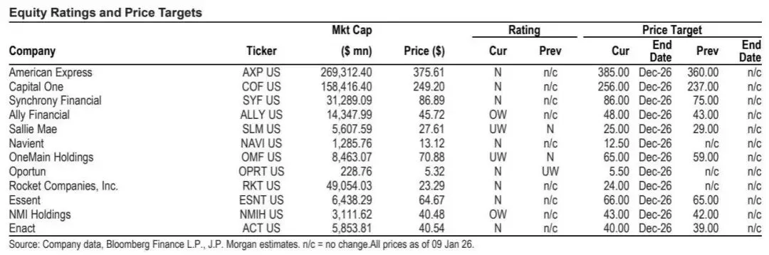在整个消费金融行业,大摩注意到年初以来目标股价稳步上调,但盈利预期基本未变。该行也承认,本报告中其也有类似行为,即便目标价和预期仍较为保守。大摩的基本预期是,其所覆盖的股票在 2026 年将获得长期平均水平的回报,但存在适度的下行不对称风险。