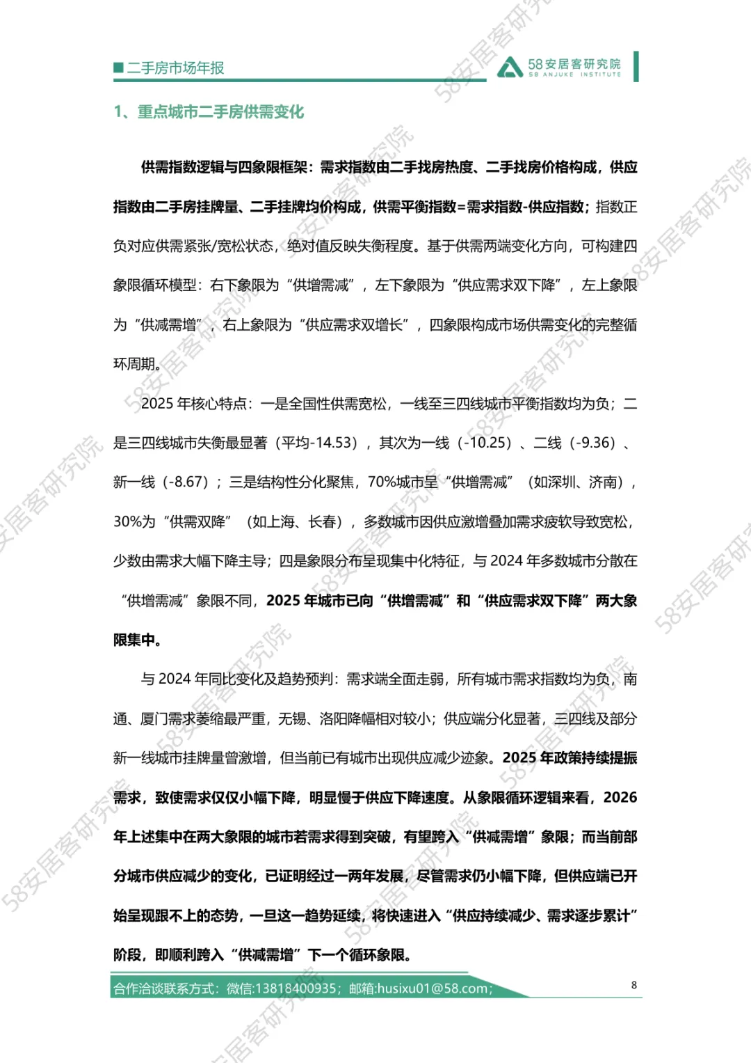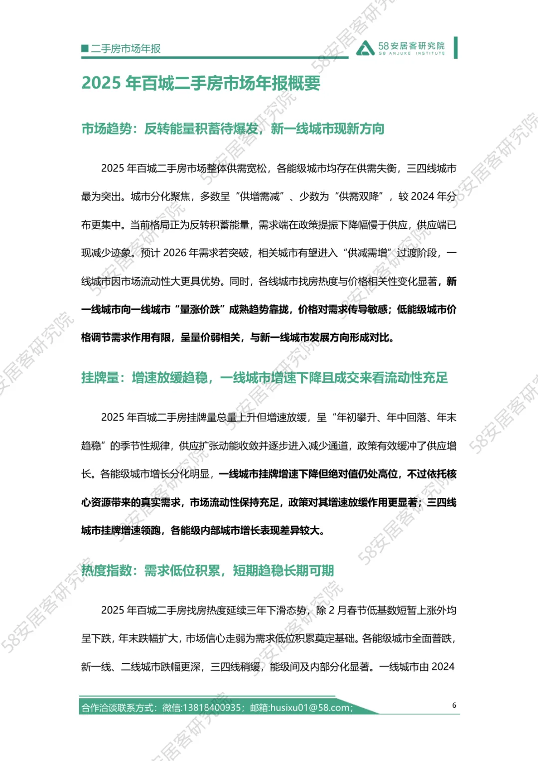 2025全国二手房市场年报:调整深化分化加剧,政策托底待需求复苏。二手房市场进入深度调整期!《2025全国二手房市场年报》显示,市场呈现“供增需减、价跌时涨”特征,各能级城市分化显著,政策持续发力缓冲市场压力,未来需聚焦需求激活与结构优化。