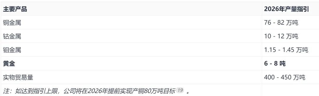 2026年产量指引积极,新增黄金板块。公司结合全球经济研判,给出了2026年积极的产量目标,并首次将黄金纳入产品序列。