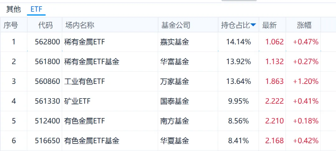 相关ETF:稀有金属ETF、工业有色ETF、矿业ETF等