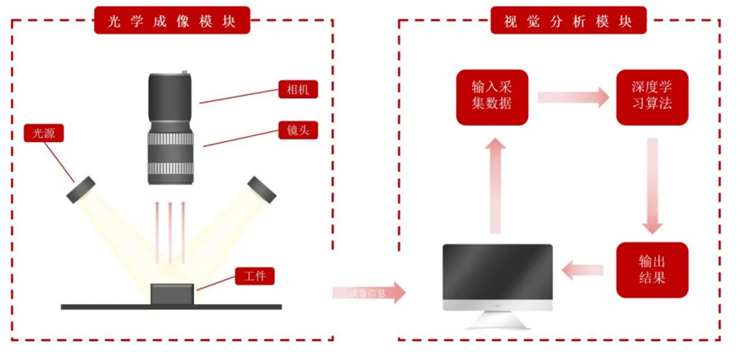 通过模板匹配、OCR(光学字符识别)或卷积神经网络(CNN)进行分类和决策。例如,在缺陷检测中,系统比较实时图像与标准模板,输出合格/不合格结果。