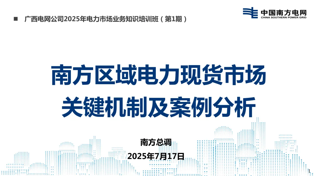 专家报告 | 南方总调:电力现货市场关键机制及案例分析