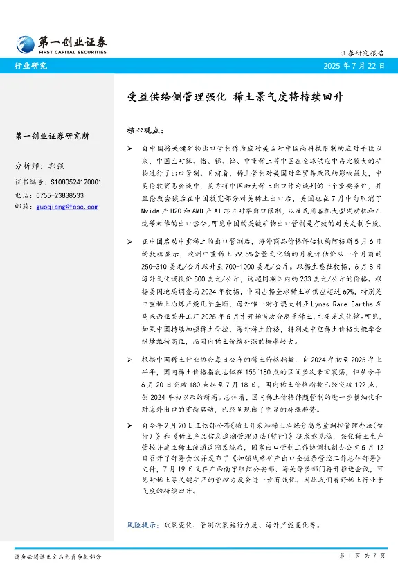 国泰海通证券-稀土行业2025年中期策略报告:供需构筑底线,政策强化弹性.pdf
