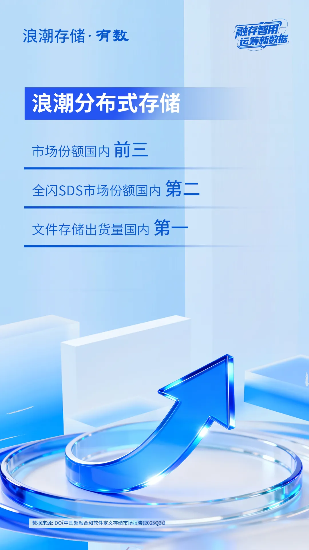 近日,国际权威调研机构IDC正式发布《中国超融合和软件定义存储市场报告(2025年Q3)》。报告显示,2025YTD浪潮分布式存储实现同比增长10.7%,市场份额位居国内前三;全闪SDS市场份额国内第二,文件存储出货量排名国内第一[1]。