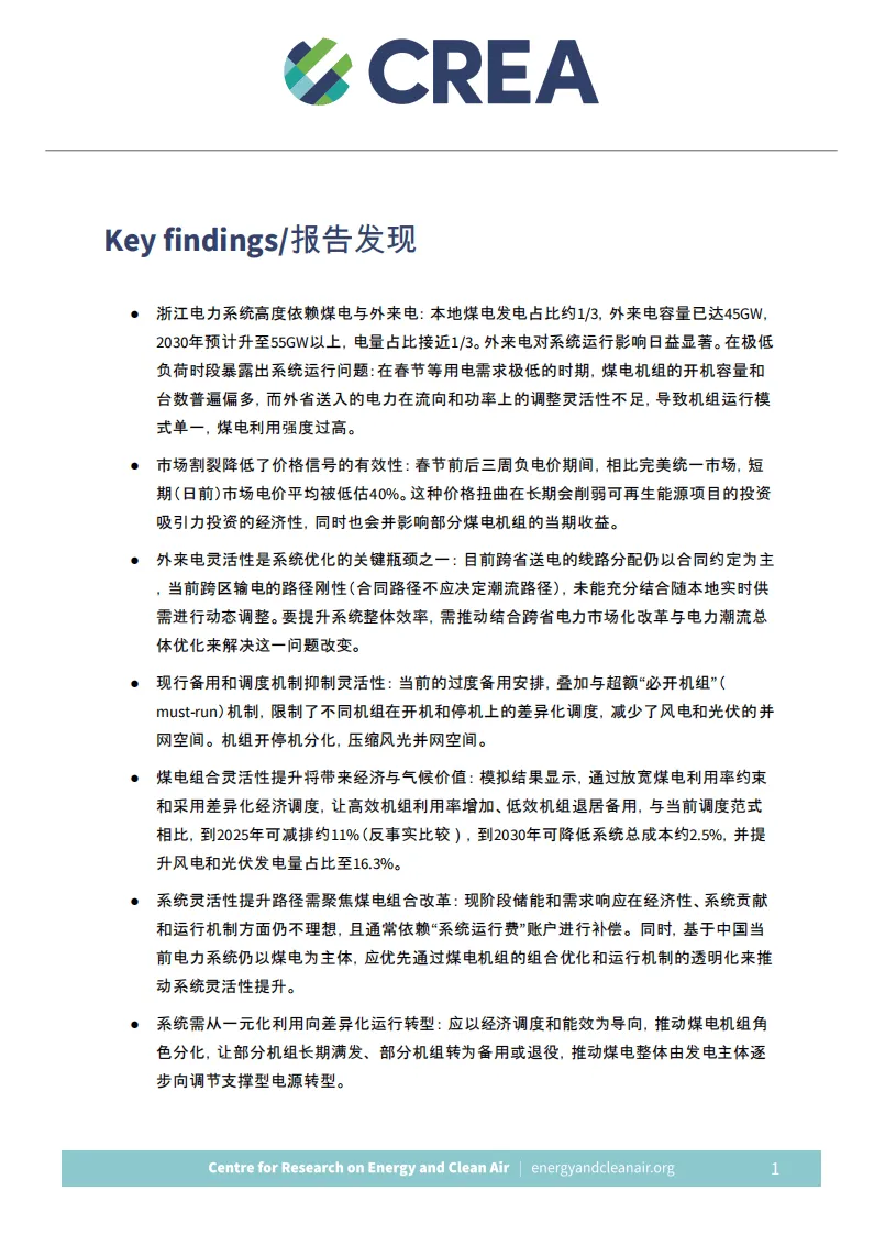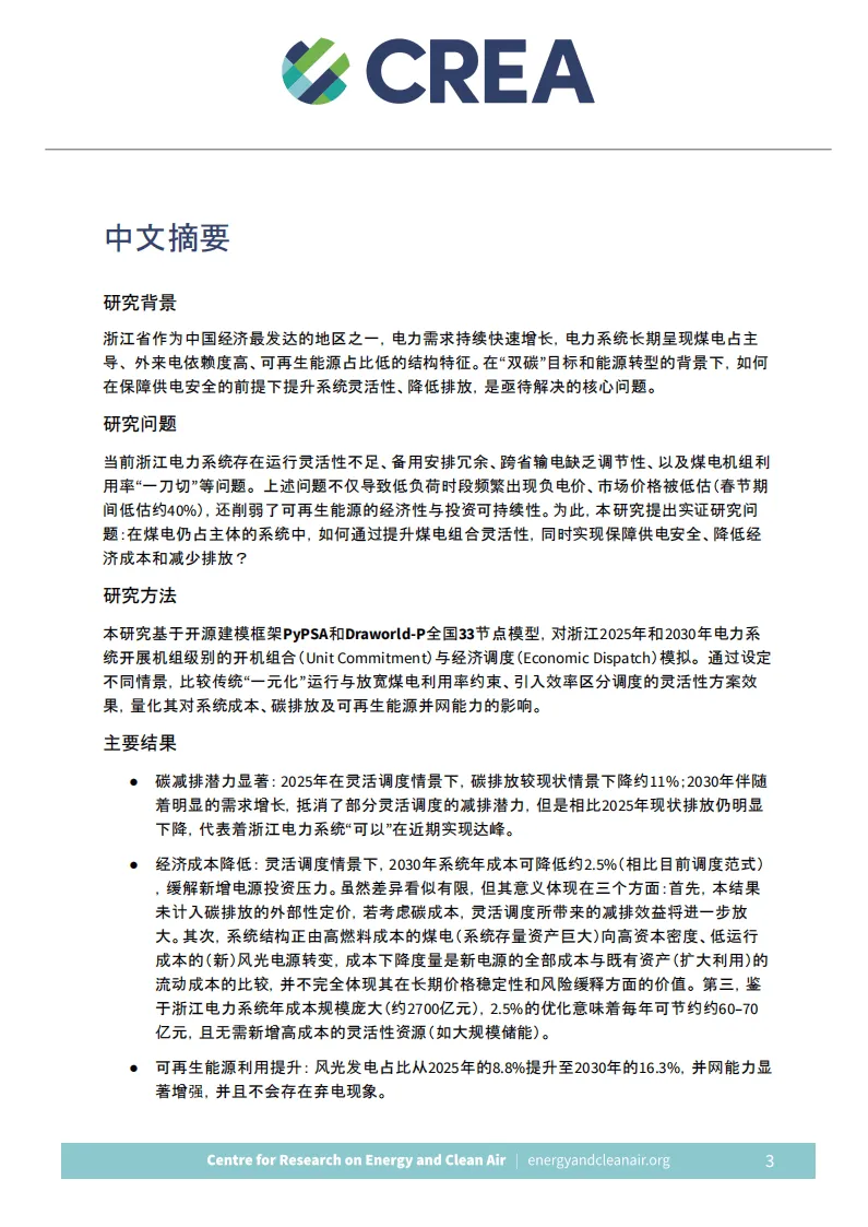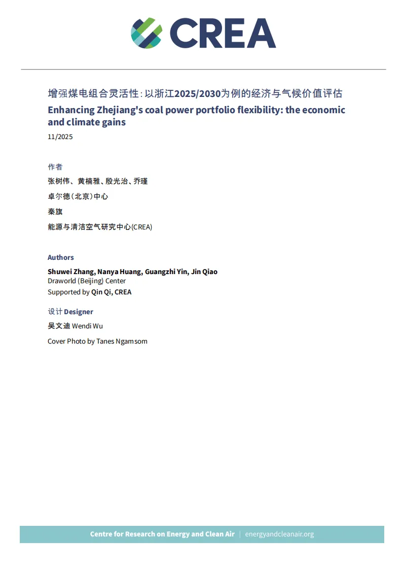 报告由能源与清洁空气研究中心(CREA)和卓尔德环境研究与咨询中心联合发布,聚焦浙江省2025-2030年电力系统,深入分析煤电组合灵活性提升的经济与气候价值。