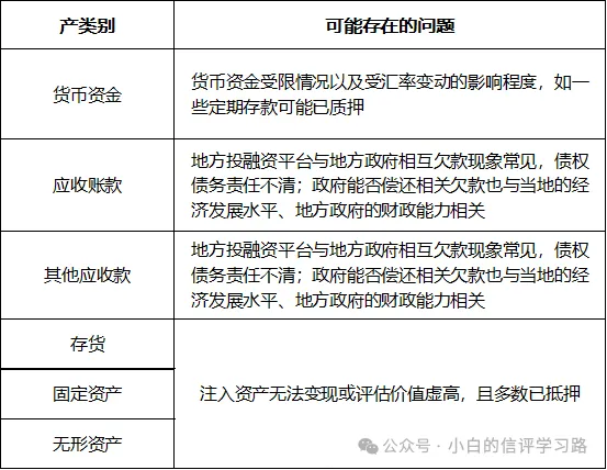 (2)非优质资产:机器设备、路政设施(如不收费的公路、绿化设施),看得见但难变现(没人愿意买无收费权的公路),仅能充资产规模。