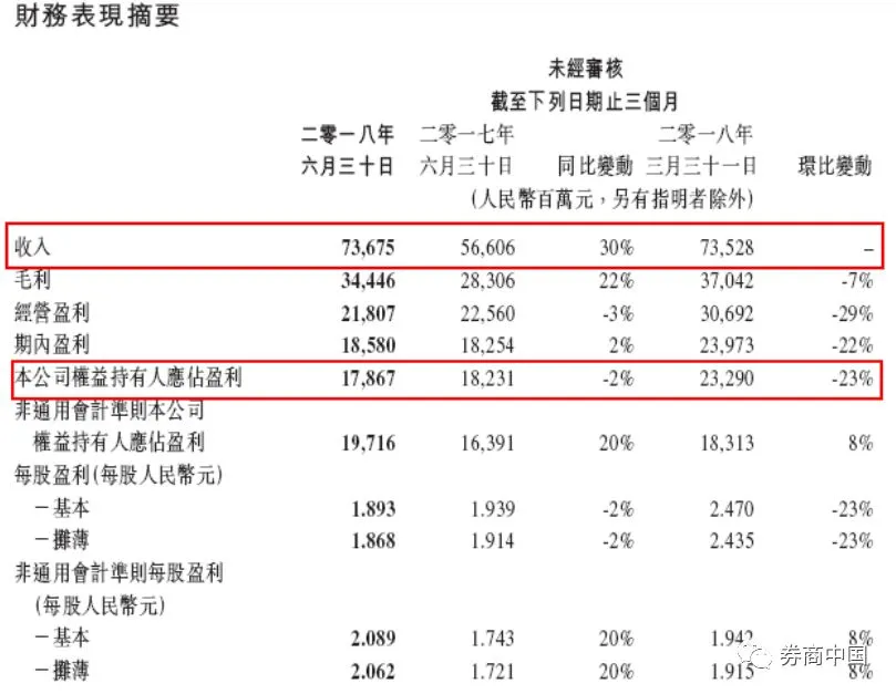 腾讯表示,收入同比增长30%,主要受支付相关服务、数字内容订购与销售、社交及其他广告以及智能手机游戏所推动。净利同比略微下降2%,主要是由于投资相关项目产生的其他收益净额较去年同期有所减少。