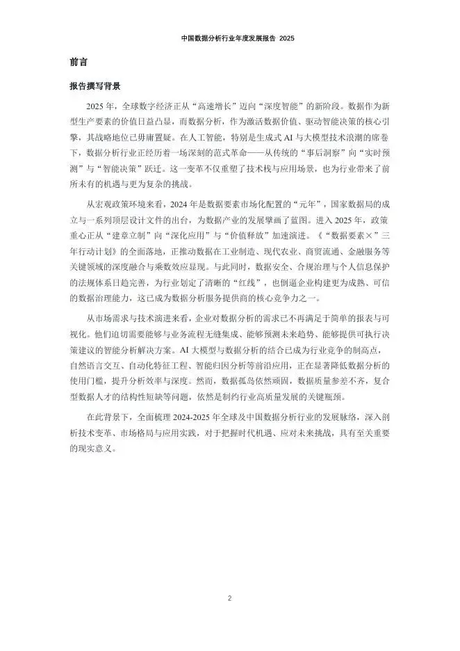 今天分享的报告是《中国数据分析行业年度发展报告2025》,版权归中国商业联合会数据分析专业委员会所有。