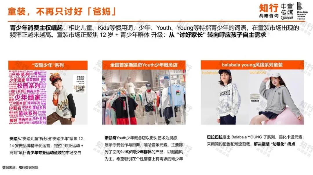 面对消费主权的转移,领先品牌已开始行动。报告列举了巴拉巴拉推出Balabala YOUNG子系列、安踏拆分出安踏少年、斯凯奇开设Youth少年概念店等案例。这些举措的共同点是弱化幼稚的卡通元素,采用更简约、潮流的设计,精准呼应青少年追求个性表达和自我风格的需求,标志着童装市场正从单纯讨好家长转向同时尊重并满足少年儿童自身的审美与功能需求。