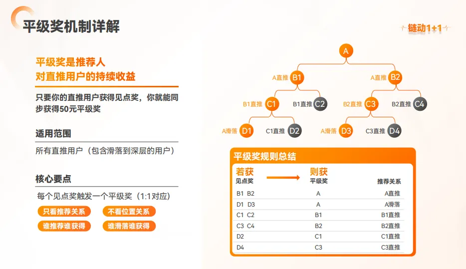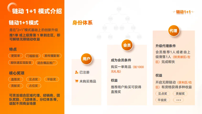 在社交电商裂变模式迭代升级的浪潮中,链动1+1商业模式凭借其轻量化、高适配性的核心优势,成为爆品推广与流量突围的重要路径。该模式脱胎于“2+1”模式并实现创新升级,以“低门槛入局、高效能裂变、多层次激励”为核心特征,通过清晰的身份进阶与精准的利益分配机制,构建起上下级协同共赢的商业生态闭环,广泛适配各类商业场景的推广需求。 身份体系是链动1+1模式运行的基础框架,采用层级清晰的分级设计,明确各身份的准入条件与权益边界。用户完成注册后,需购买指定商品(如1000元礼包)即可成为会员,获得基础推广资格,核心权益为推荐用户购买可获取直推奖。会员升级为代理的条件更为简洁,只需推荐1人或由上级滑落1人至左区(贡献区)完成帮扶,即可解锁无限链动收益权限,进入获利区(右区),并享有见点奖、平级奖、贡献奖等多重进阶权益。这种双层级身份设计,既降低了用户参与门槛,又通过权益差异形成持续的晋升动力。 模式的高效运转依托两大核心规则:两两复制与精准滑落。架构层面采用“两两复制”机制,即每个用户在同一层级推荐用户最多占据两个位置(左区1个+右区1个),当推荐人数超过2人时,第3单及后续订单将启动滑落机制。滑落遵循“从上到下、从左到右、只找左区”的核心逻辑,上级的超额推荐资源将自动填充至下级的左区空位,实现资源的均匀帮扶,助力下级快速完成升级条件。这一规则从根本上解决了传统裂变模式中资源分配不均的痛点,保障了团队发展的均衡性与可持续性。 奖励机制是驱动模式裂变的核心引擎,构建了覆盖推广、帮扶、层级协同的全链路激励体系,各奖项的触发条件与分配逻辑精准适配模式运转需求。直推奖是基础激励,只要推荐用户完成购买,无论被推荐人处于左区还是右区、任意层级,推荐人均可获得固定奖励(如200元),实现推广行为的即时反馈。见点奖的核心逻辑是“贡献传递”,代理升级后,其右区所有成员的左区第一单(含自主推荐与上级滑落)均需向其贡献见点奖(如150元),形成无限链动的收益管道。 平级奖则聚焦层级协同,当直推用户获得见点奖时,推荐人同步获得固定平级奖(如50元),且奖励触发仅与推荐关系相关,与位置无关,有效激励用户深耕团队培育。贡献奖与帮扶机制深度绑定,当直推左区成员或直推滑落用户获得见点奖时,推荐人可获得贡献奖(如200元),既保障了帮扶行为的收益回报,也强化了推荐关系的长期价值。占位奖则针对滑落场景设立,当有人滑落到下级左区空位时,滑落点位的上级可获得固定奖励(如50元),进一步完善了帮扶机制的利益闭环。 整体而言,链动1+1商业模式通过“身份分级明确化、规则运转标准化、奖励分配精准化”的核心设计,实现了裂变效率与生态平衡的双重优化。其低门槛、易复制的特性降低了用户参与与传播成本,而多层次的激励体系则构建了“上级帮扶下级、下级反哺上级”的共赢格局,不仅能快速推动用户基数与业绩的指数级增长,更可通过灵活组合区域代理、团队奖励等体系,适配不同行业的商业场景,成为当下社交电商领域极具竞争力的裂变解决方案。注明:以上所有数据均来自互联网公开信息获取,小编不对本文内容任何真实性承诺保证。如有不实联系小编处理。