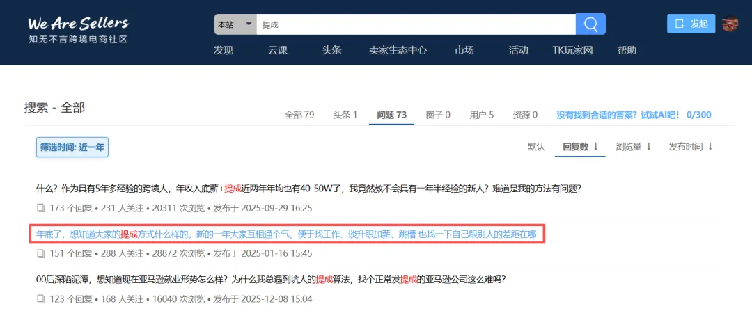 以提成为关键词在知无不言上搜索帖子,回复数降序排列的结果如下: