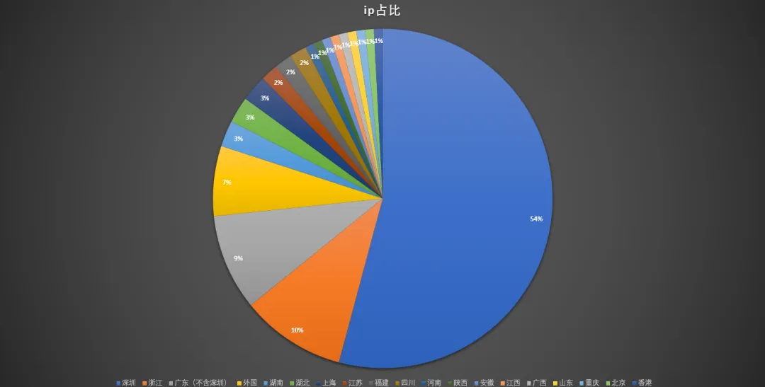 从回复ip归属地来看,广东占据半壁江山,深圳凭一己之力又占绝对核心。