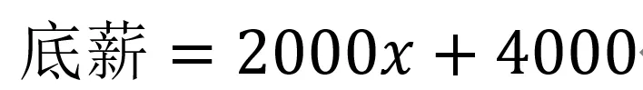 1. 从半年经验一直到4年半经验左右,代表底薪的曲线随工龄增长平滑向上,几乎可以认为是线性正相关,则构建函数如下(0≤X≤4):