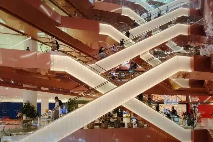 在设计理念上,项目巧妙地将佛统府的佛教文化精髓融入现代商业空间之中,使得购物中心不仅是一个消费场所,更是一个充满文化内涵和视觉冲击力的艺术空间。