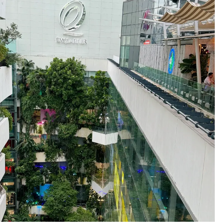 曼谷的气候条件得天独厚,使得商场能够大量引入绿植元素,无论是屋顶绿化、垂直绿墙还是中庭景观,都极大地丰富了商业空间的视觉层次。这种绿色生态的设计不仅美化了环境,也为顾客提供了一个放松身心的休闲空间。例如,EMQUARTIER商场通过立体绿化装饰,拥有高达30%至40%的绿色空间,使得购物体验更加愉悦和放松。