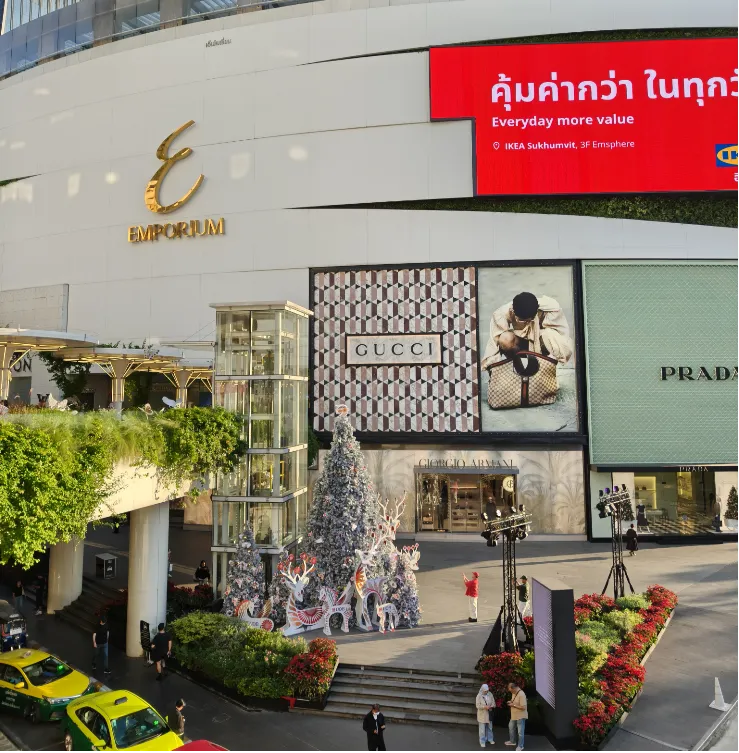 EMPORIUM由泰国零售巨头THE MALL集团打造,于1997年开业,是EM商圈的创始项目,其诞生正值亚洲金融危机,集团以引入国际奢侈品牌的高端定位成功破局,为后来整个EM商圈(EMQUARTIER,EMSPHERE)的发展奠定了基调。