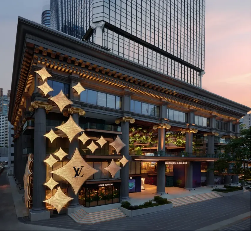 GAYSORN AMARIN是曼谷一处集购物、餐饮、娱乐于一体的豪华购物中心,为曼谷市民及游客提供了崭新的生活方式体验。项目最大的亮点就是拥有东南亚首家Louis Vuitton品牌餐厅Gaggan at Louis Vuitton。这家餐厅由曾蝉联“亚洲50大餐厅”榜首的世界名厨GAGGANANAND主理,与路易威登联手打造了一场美食的极致盛宴,餐厅内部设计巧妙融合了泰国文化元素和路易威登的标志性风格,营造出一种奢华而又不失温馨的用餐氛围。菜单上的菜品秉承“甜、酸、咸、辣、惊喜”的“5S”理念,为消费者带来了一场前所未有的美食之旅。