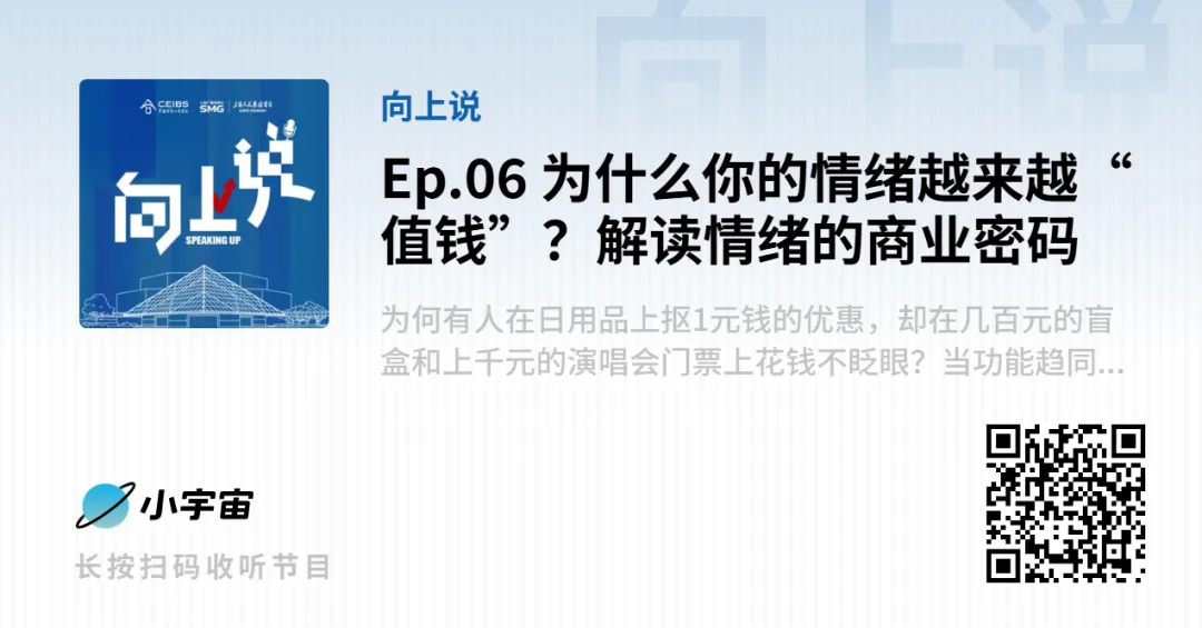 本文根据王雅瑾教授在《向上说》播客节目中的分享整理编辑而成,扫码可收听该期音频节目完整版,欢迎在小宇宙上关注中欧国际工商学院官方播客节目《向上说》: