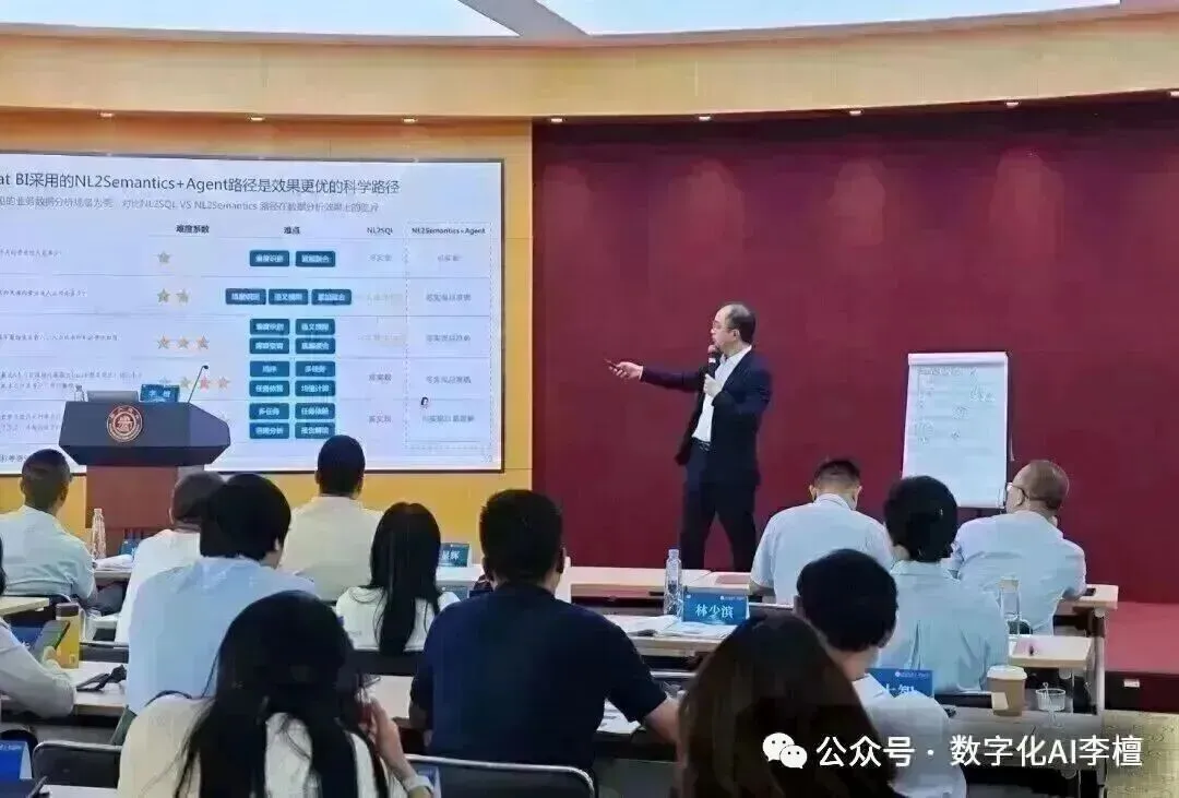 回顾其近年来的系列培训与咨询服务,呈现出一条清晰的主线:让技术落地,让智慧生根。 其培训并非单向的知识传递,而是深度结合企业实际痛点的 “联合攻坚” 。 无论是为大型央企规划数字化转型蓝图,还是为制造业龙头识别AI优先应用场景,他始终扮演着 “技术翻译官” 与 “战略架构师” 的双重角色。