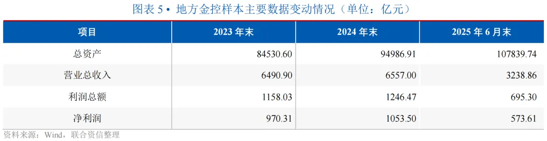 2024年末及2025年6月末,地方金控样本企业的总资产均保持增长态势。截至2025年6月末,共有9家地方金控资产总额较上年末下降,但降幅均未超过5.00%,1家地方金控资产总额较上年末增长超过100.00%,为苏州国发(增长303.13%),主要系苏州国发对苏州银行持股比例提升,并将其纳入合并范围所致。