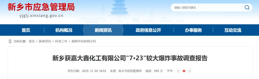 2025 年 7 月 23 日 16 时 05 分,河南省新乡市获嘉县照镜镇楼村的获嘉县大鑫化工有限公司,在非法生产过程中发生一起爆炸事故,造成 3 人死亡、2 人受伤,直接经济损失约 587 万元。近日新乡市应急管理局公布的事故调查报告明确,这是一起由企业非法转租厂房设备、无安全生产条件下违规生产、违规动火作业,再加上属地党委政府及相关部门履职不到位共同导致的生产安全责任事故,且事故发生后获嘉县政府及有关部门还存在瞒报行为。