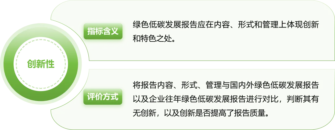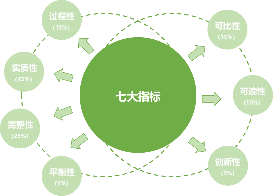 《绿色低碳发展报告评级标准(2026)》延续《中国企业可持续发展报告评级标准》的“七性”框架,设置过程性、实质性、完整性、平衡性、可比性、可读性、创新性七大评级指标,但在指标释义、解读与评价方式上有所差异。同时,结合各行业企业在绿色低碳发展实践中的差异化特征,《绿色低碳发展报告评级标准(2026)》设置适应性的信息采集表,确保对不同行业企业的绿色低碳发展报告的评级既公平客观,又精准有效。