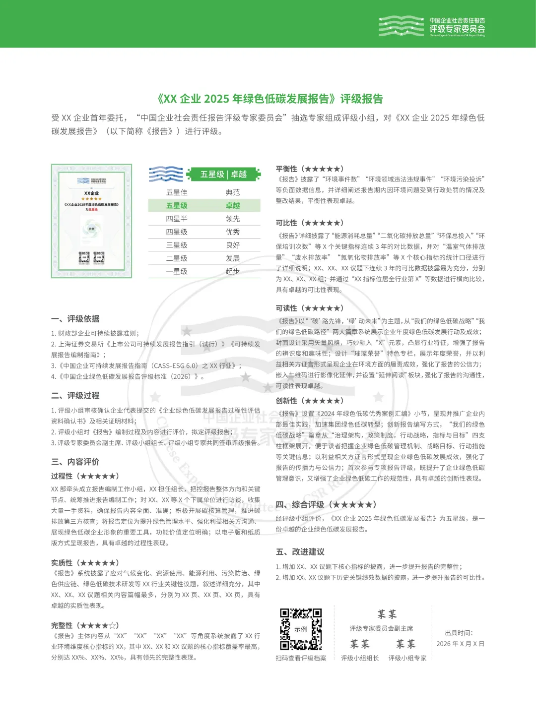 《中国企业绿色低碳发展报告评级标准(2026)》