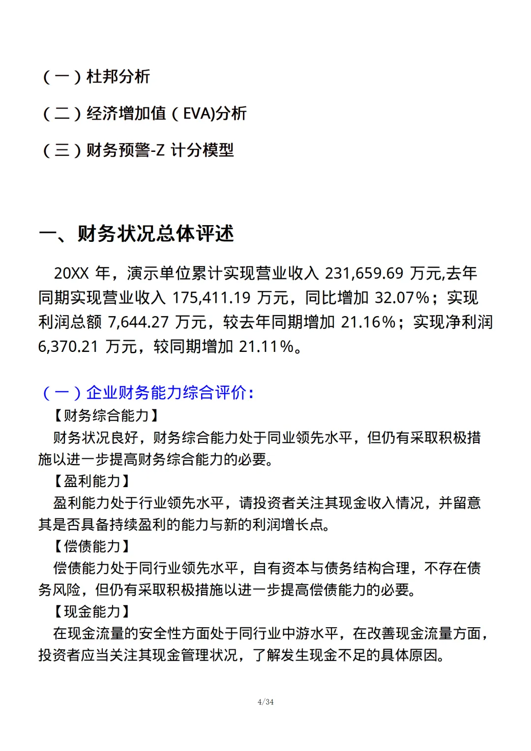 (一)企业财务能力综合评价