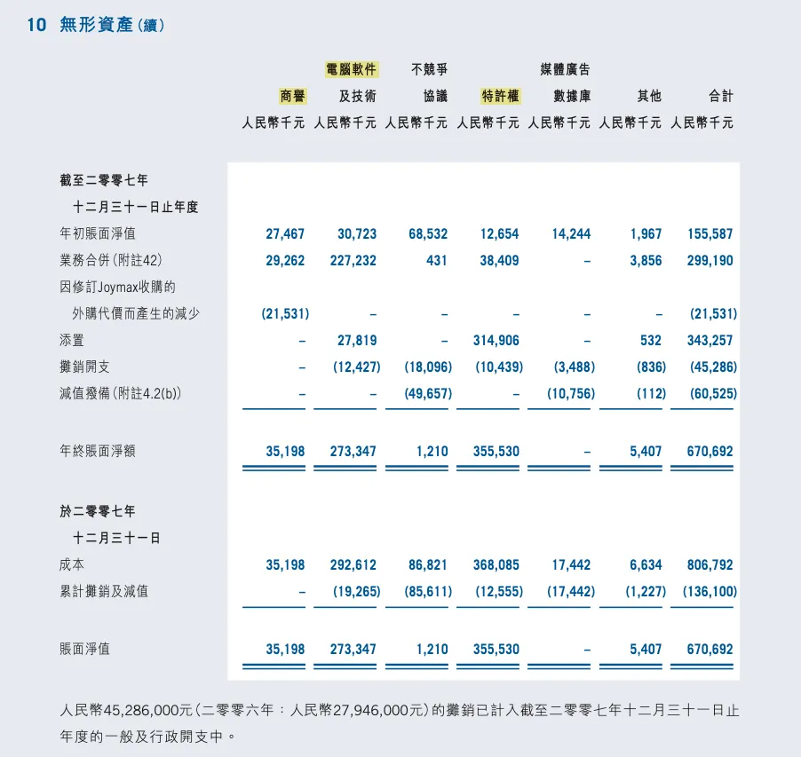 同时,这里的特许权是值得关注的地方,指的是腾讯通过授权协议获得的特定经营权,比如游戏代理权或品牌授权,属于无形资产。像《地下城与勇士》《穿越火线》这些游戏的代理权就属于这类。