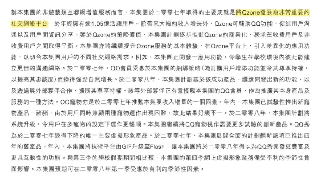 不过根据年报披露的信息,QQ秀收入有所下降,这块公司认为产品已经成熟,需要重振活力,这个咋听起来这么熟悉(2022年游戏业务遇冷也是这么说的),我去翻了一下下一年的年报,公司的用词是:QQ秀的收入模式由按條銷售轉變為包月服務,故網絡虛擬形象及社區服務的收入錄得令人鼓舞的增長。证明腾讯是有让原有业务老树开新芽的能力的。