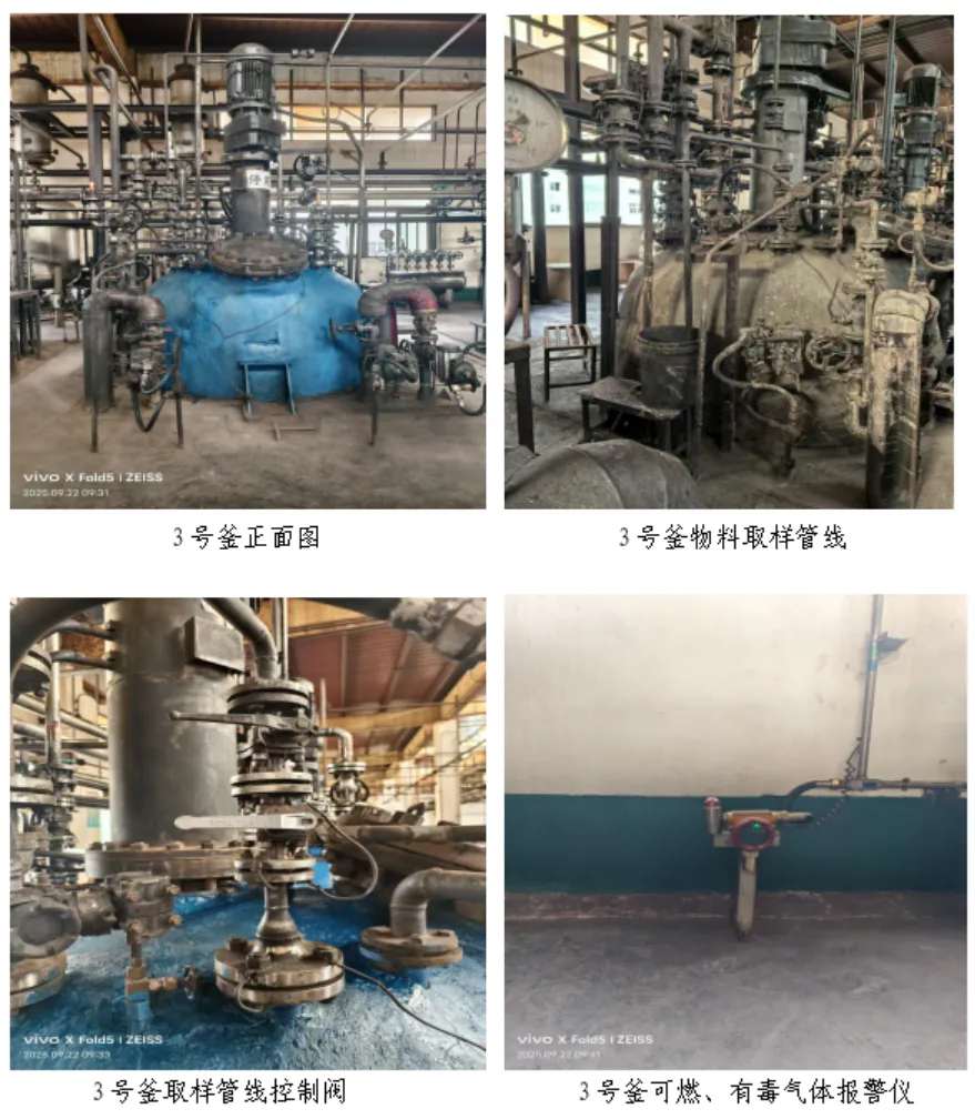 发生事故反应釜为3号加氢反应釜(单位内部编号2XR303),为三楼西北部第三个反应釜,距西墙9.63m,距北墙6.07m,距西侧防火门6.1m。