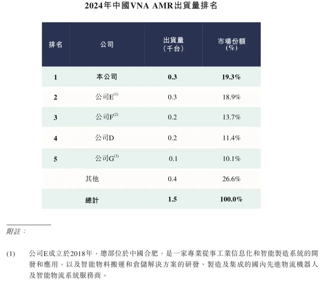 VNA AMR在中国的总出货量为约1.5千台,预计于2030年进一步增至20.8千台。以2024年VNA AMR出货量计算,凯乐士科技在中国排名第一。不计及下列五大领先企业,估计市场上有少于50家其他VNA AMR供应商。