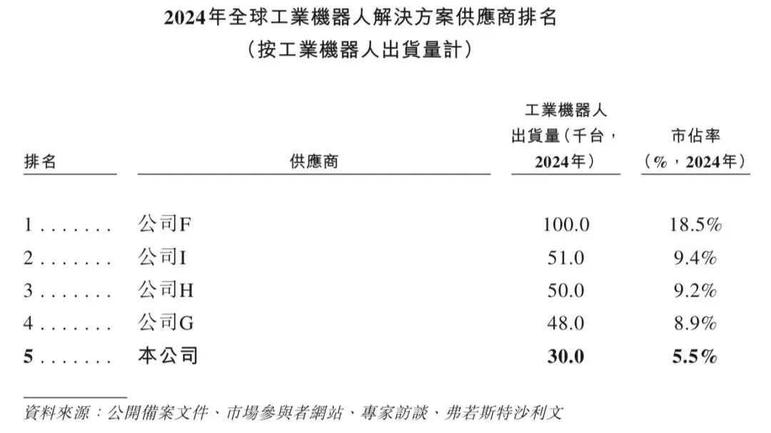 按2024年工业机器人出货量计,埃斯顿于全球工业机器人解决方案市场在全球所有供应商中排名第五,市场份额为5.5%。下表载列按工业机器人出货量计埃斯顿在全球工业机器人解决方案市场的排名及市场份额。