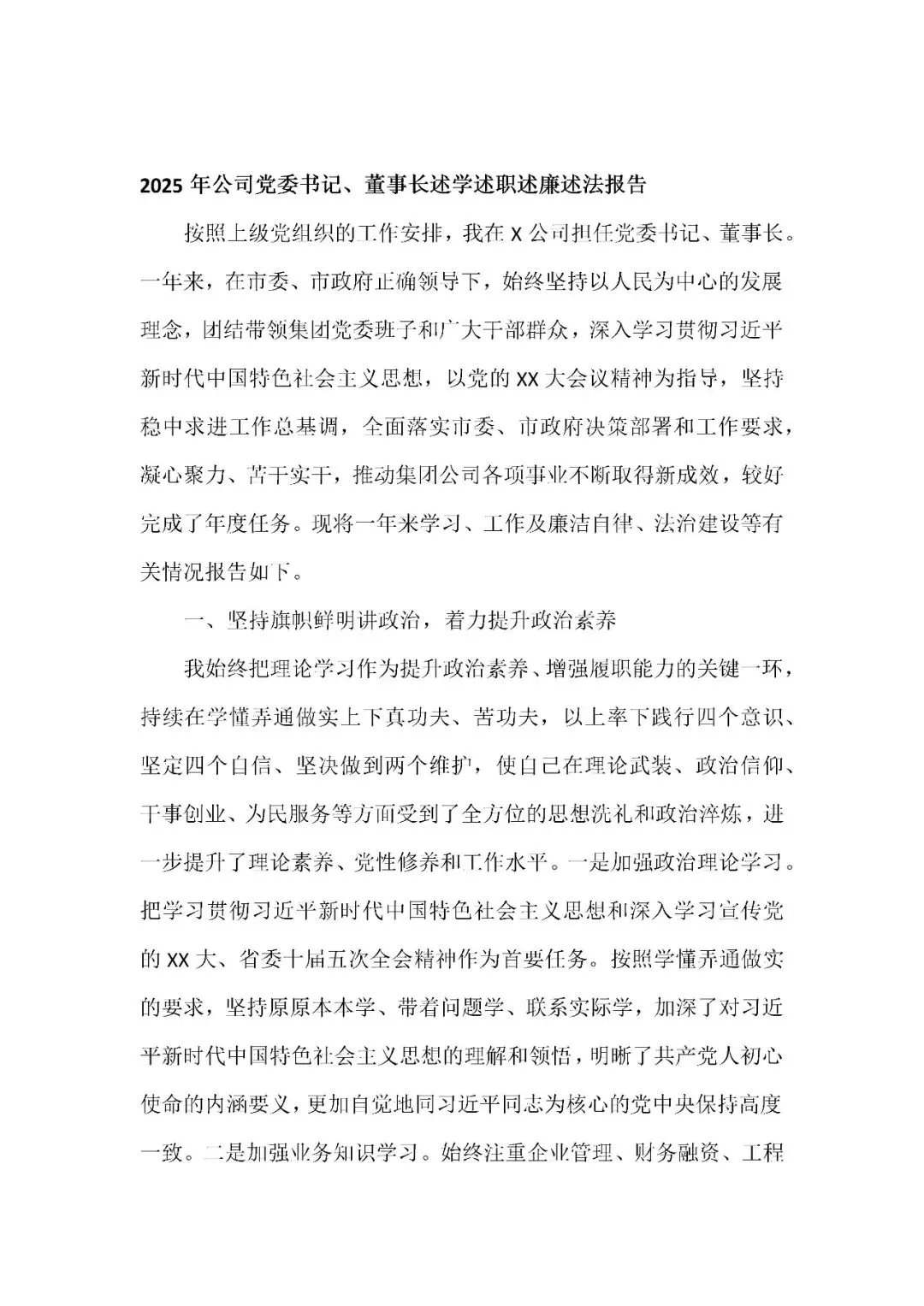 2025年公司党委书记、董事长述学述职述廉述法报告
