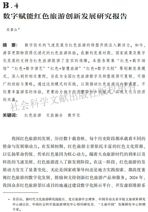 新时代文化旅游研究院院长、北京旅游学会理事、中国劳动关系学院文旅政策研究中心副主任、中国社会科学院旅游研究中心特约研究员、“文旅中国”发展研究中心特聘专家吴若山以《数字赋能红色旅游创新发展研究报告》为题撰写报告。