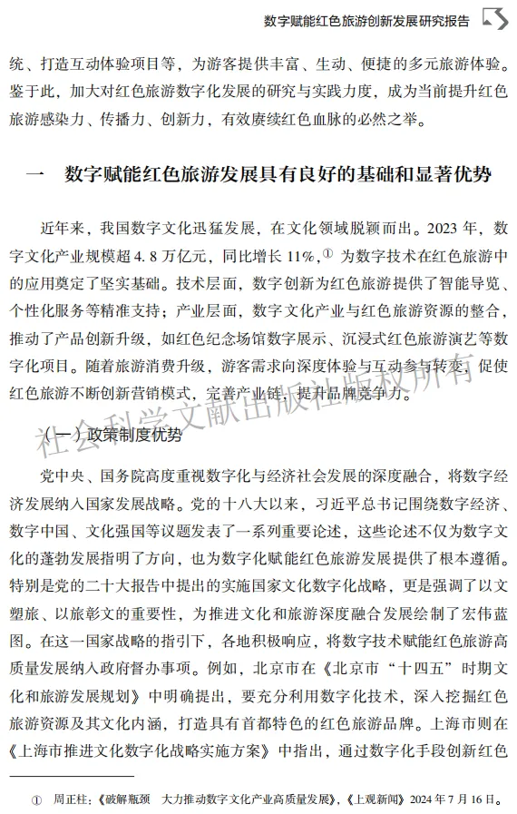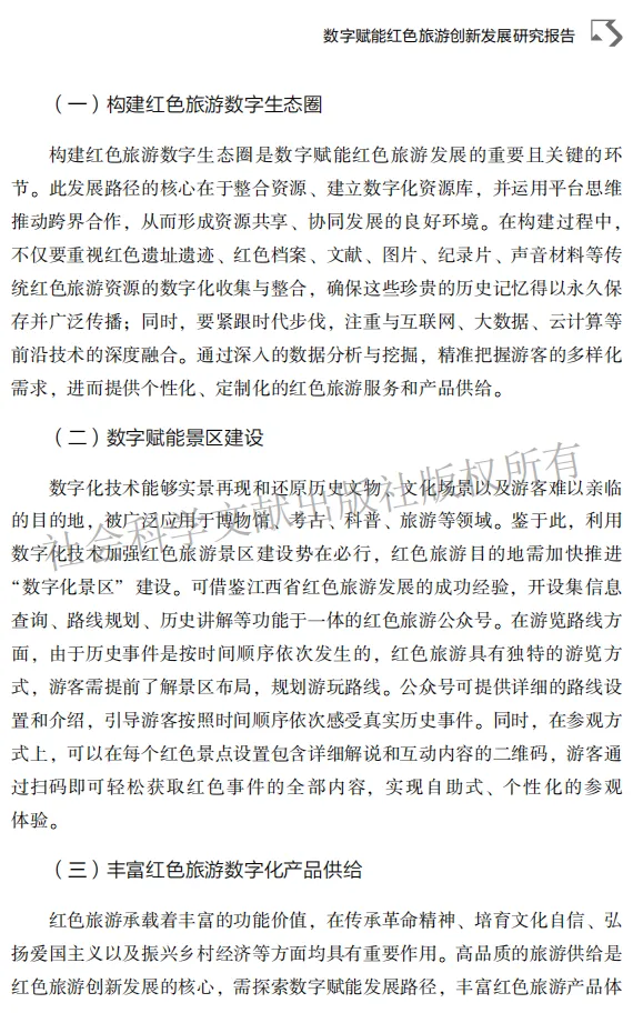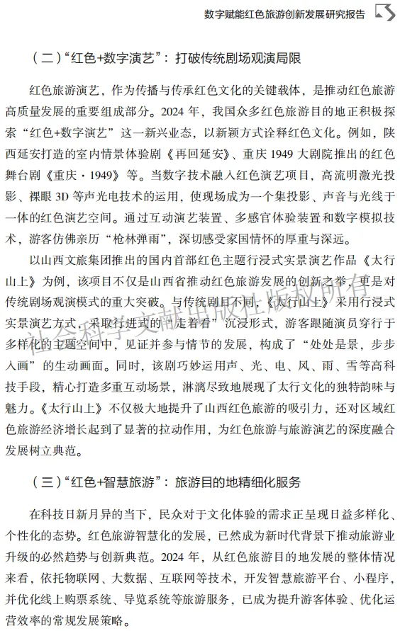《中国红色旅游发展报告(2024)》以党的二十大精神为引领,聚焦推进中国式现代化的时代任务,系统阐释红色旅游在新时代所展现的独特价值和深层意义。红色旅游不仅是传承红色基因、弘扬革命精神的重要阵地,也是连接红色文化与现代生活的时代桥梁。本书强调用整体统筹、资源整合、产业协同等方式推进红色旅游高质量发展,倡导在保护中创新、在传承中融合,引导红色旅游更好地融入国家战略布局,在科技赋能、沉浸体验等方面不断探索。