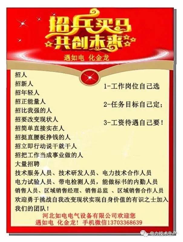 本公众号所有资料转发就送!公众号所有资料仅做参考用,不能用作现场操作的标准!现场操作请严格执行国标,行标,企标以及你所在企业的规章制度安全制度!免责声明:本文来自于公众号特超高压创新,由电力技术生产整理分享,本公众号仅供学习交流,所有课件仅做参考分析,不作为实际标准,不可作为现场操作依据,不用做商用,!我们注重专业知识的学习,交流,分享,探讨。版权归原作者所有,如有异议请告知,我们及时删除!如果朋友们发现文章里面有技术性,专业性的错误,请及时联系我们,或者留言,我们及时改正!非常感谢!其他公众号转发本公司文章敬请注明本公众号全名称,并请勿用于商业目的!关注公众号,扫描小编二维码,送您549页高压电气设备的试验与状态诊断和831页高电压技术!为了更好交流,学习,了解国网南网各大院校电力技术发展情况,能充分展示大家的技术风采,体现大家的技术心得,衷心欢迎大家投稿给我们,包括您在工作学习中的技术心得,技术案例,电力安全事故案例分析报告!1、文稿可采用图文格式,也可以采用PPT格式,PDF格式。2、文字大于300字以上,PPT格式PPD格式10页以上!3、稿件为原创,其他各种自媒体公众号还没发布为好。2、单篇文字一经录用,付您50元稿酬,内容比较大,有案例意义的可以加大稿酬。电力安全事故通报,事故分析100元!4、可以按您的专业加入各种专业技术交流群进行技术交流,享受定期推送的各种专业技术资料!联系手机号同微信 13733378069 或者识别扫描下面二维码!河北如电企业简介:这个企业我们是做什么的,我们主要生产哪方面设备,我们主要做哪方面服务,我们主要拥有哪些资质!我们如电公司的企业文化是什么!河北如电主要服务于电力能源行业,做电网和能源行业的在线监测设备和检测仪器仪表,以及电力试验调试,带电检测服务,各种特殊试验服务!新产品新技术科技项目的合作研发,合作推广!1:咱们如电主要生产产品,分为两大系列系列1 在线监测智能电网系统,数字孪生AI融合技术,智能识别与诊断系列,输变电设备状态感知与智能应用2 智能数字测试设备!其中系列1在线监测智能电网,数字孪生设备 特色产品 RDPD9000智能套管在线监测装置(介质损耗局放监测二合一),RDPD600E型分布式电缆局放监测与评估系统,RDZH800变压器综合监护系统(振动,局放,温度等),RDDLX系列地埋电缆预防破坏地钉地桩监测报警装置,RDXDC90系列蓄电池在线监测系统,RDPD系列变压器,电缆,GIS,开关柜等局放在线监测系统,RDX系列输电线路温度在线监测,RDJ系列变电站轨道轮式巡检机器人,DYJ7系列光伏电站智能清扫机器人等!智能识别与诊断系列,输变电设备状态感知与智能应用!系列2 智能数字测试设备:配网物资测试系统,电力安全工器具试验电学力学、电动车充电桩系列检测设备、变压器绕组变形频响阻抗、便携式交直流电源、串联谐振耐压、电缆检测故障检测、发电机、互感器及计量设备、回路电阻、继电保护、接地地网、绝缘交直流耐压、绝缘子、氧化锌避雷器过电压保护器、油化SF6、直流电阻、直流系统及蓄电池等各种检测仪器!以及代理国外各种仪器设备!拥有自己的仪器设备超市化商务平台,可以供广大朋友一站式够齐,合理化性价比采购各种电压等级试验设备仪器仪表!2:咱们如电主要服务:带电检测服务电力安全工器具设备的试验检测通过CMA 认证 CNS认证各种电气试验调试类服务。带电检测服务主要包含:(后面有详细列表)大地网接地参数综合测试接地装置特性试验(50A地网检测5A地网检测)、电容电流、开关柜局部放电、电动车充电桩,红外热成像可见光紫外光学、GIS一体化、电缆线路、变压器及电抗器测、电能质量,线损低压用电查、电缆振荡波超低频介损、氧化锌避雷器带电测、SF6气体密封,SF6气体成分分析,直流系统维护蓄电池充放电内阻,电缆故障定位、电缆路径识别、绝缘子等检测、基于人工智能技术的电力无人机巡检。3:新产品新技术科技项目的合作研发,合作推广!公司拥有数十名科技研发人员,和各大院校合作,通过和我们合作,把您的创新想法变为现实,通过合作创新解决您工作实际中的各种问题,使工作变得更简单,更安全,更高效!更有乐趣,更有成就感!也可以通过合作把科研院校一些成品半成品进一步开发成实用产品,以及您在工作中研发的一些成品半成品进一步研发推向市场!咱们如电公司拥有的资质:我们拥有高新技术企业证书,省科技型中小企业证书,电力承装修试资质,ISO9001质量管理体系,ISO14001环境管理体系和ISO45001职业健康安全管理体系!