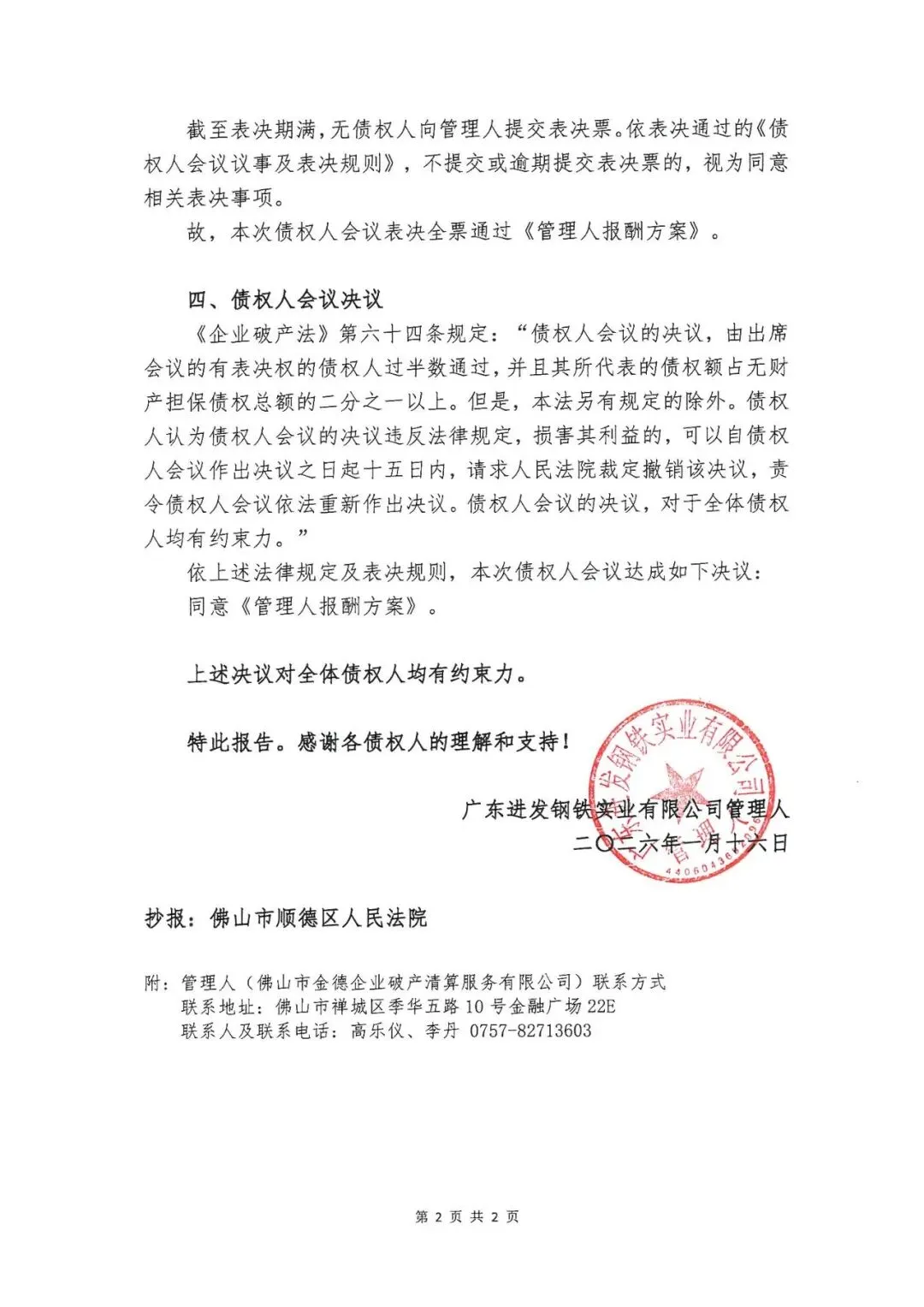 关于进发公司案第三次债权人会议决议的报告