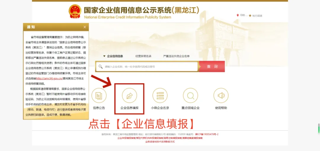 您可通过浏览器复制网址进入系统后点击【企业信息填报】。