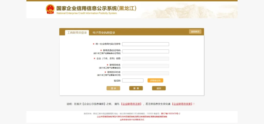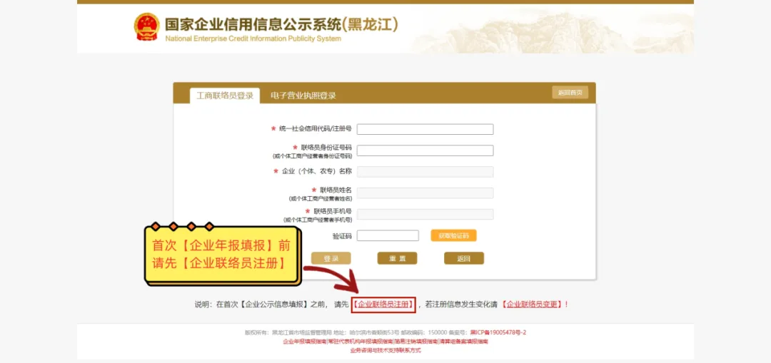 1、如果您是首次【企业年报填报】,请先点击【企业联络员注册】。