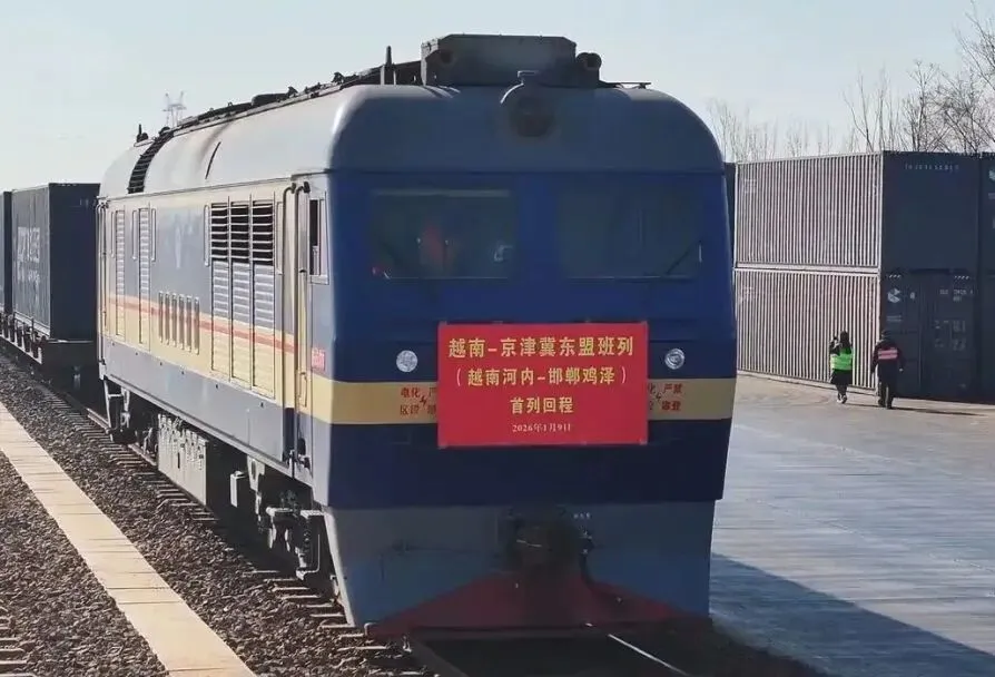 1月9日,一列满载木薯淀粉的货运班列驶入河北省鸡泽县曹庄镇站。正面起重机随即将集装箱逐个卸下,转装至短程运输车上,运抵邯郸(鸡泽)国际物流园的保税仓库。这批优质木薯淀粉将很快供应至鸡泽周边及邢台等地,为食品加工业、纺织印染业等提供原材料。“邯郸鸡泽-越南河内”货运直达班列自2025年3月首班开行以来,已累计发运36个班次,将京津冀地区的润滑油脂、紧固件等工业产品输送至东盟。此次回程班列的开通,标志着这条线路实现“重去重回、双向畅通”,为越南等东盟国家的货物进入京津冀新增一条便利的陆上通道。(新华社新媒体)